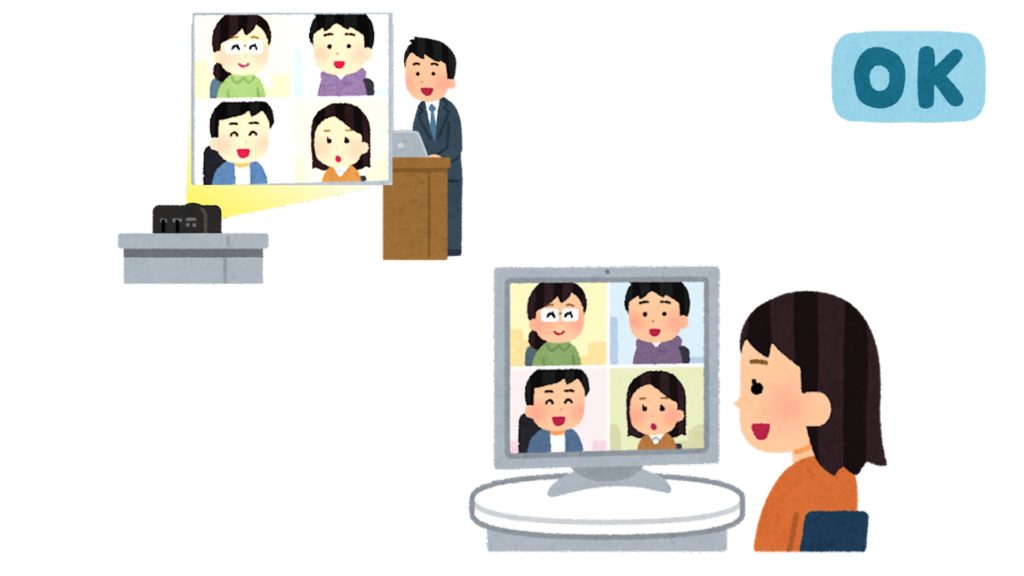 ついでに、オンライン参加の人の顔もスクリーンを通じて見ることができて一体感が出ますし、質問があった際にもスクリーンを見ながらお話しできるので進行がとてもスムーズになります。