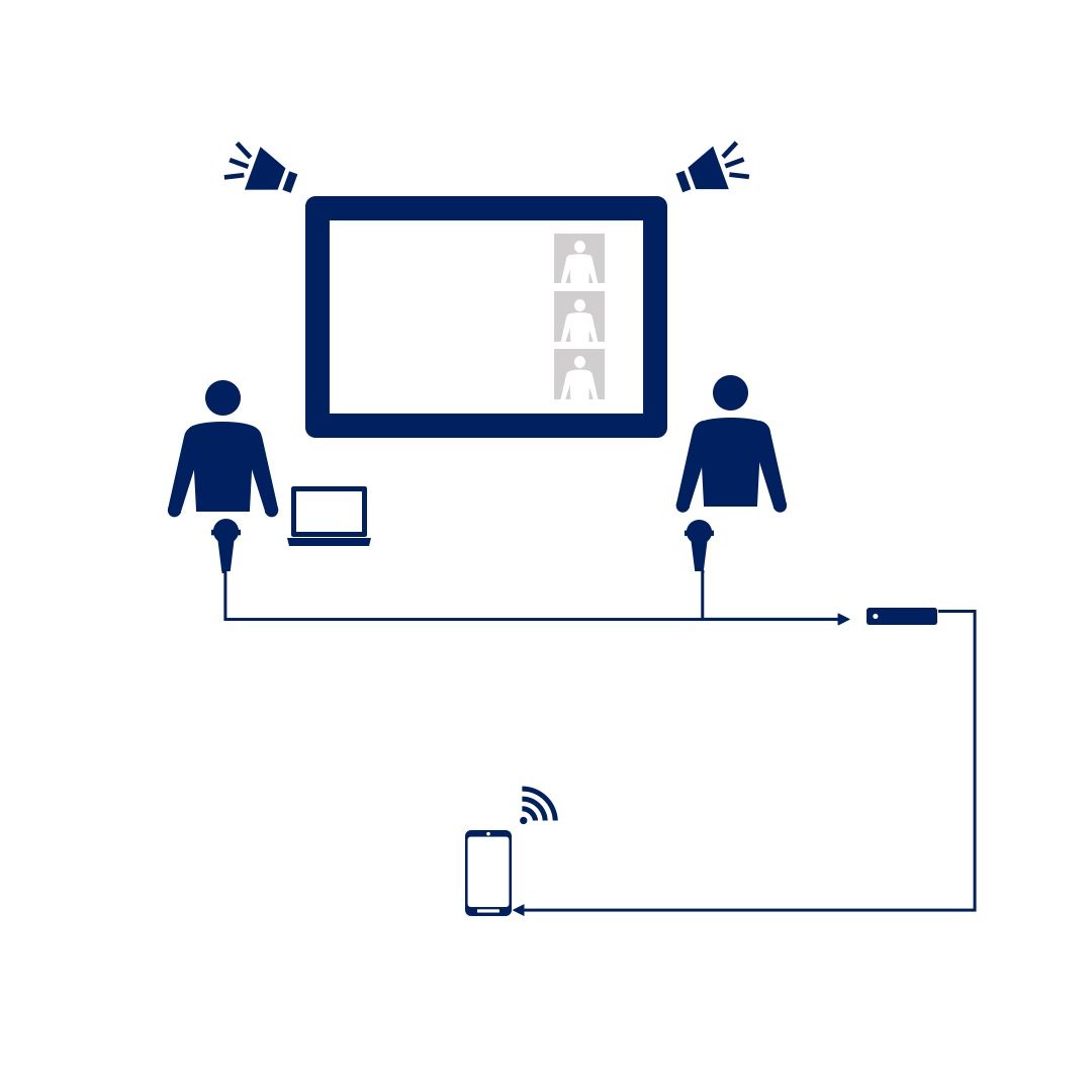 →もしZoom参加者の声を会場に流す場合、スマホだと対応できないです。ハウリングが起きちゃいます。